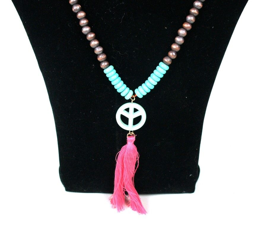 S_3015005 - CREAM IBIZA LOOK Halskette Holz mit Peace-Zeichen (1.)