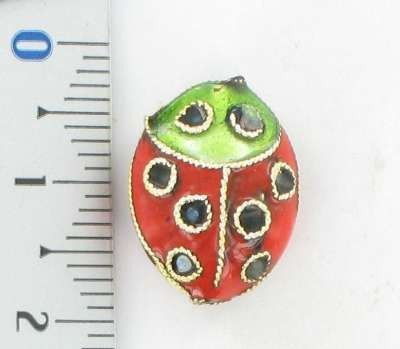 S_32706b - Art.nr: - (. 6 Stück) 32706b Cloisonne Perlen ROT / GRÜN BEETLE