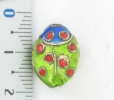 S_32703b - Art.nr: - (. 6 Stück) 32703b Cloisonne Perlen GREEN / BLUE BEETLE