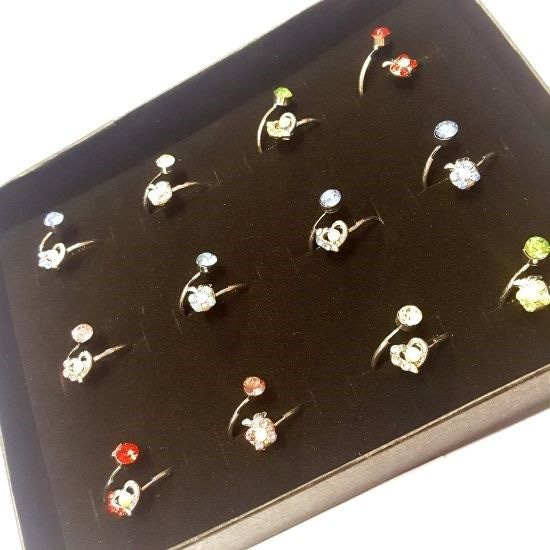 S_600493C - Steinringe INCL.VERPAKKING STRASS MIX FARBEN (6pc)