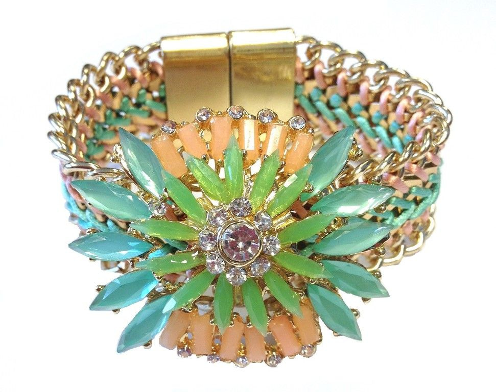 S_8670407 - IBIZA LUXURY LOOK ARMBAND SALMON / Türkis-Blumen (1.)