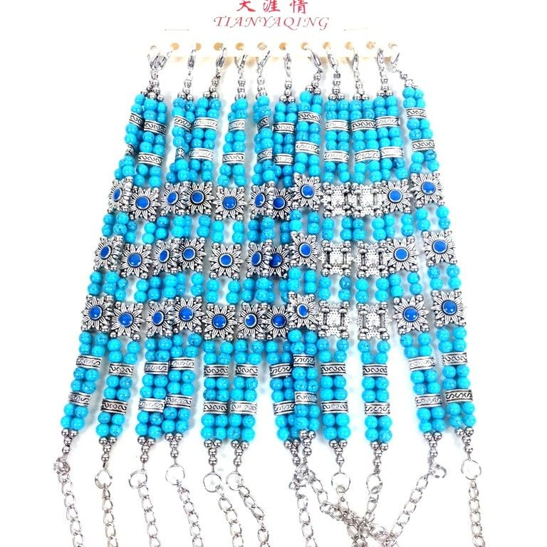 S_600621N - Armband Silber LOOK / TURQUOISE MIT BLUME (12st)