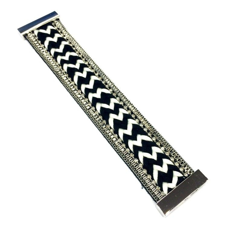 S_600800M - Armband Silber Magnetverschluss - BRAID BLACK / WHITE (1st)