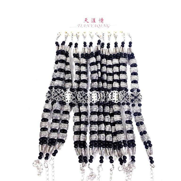 S_600621K - LOOK ARMBAND SILBER / SCHWARZ MIT BLUME (12st)
