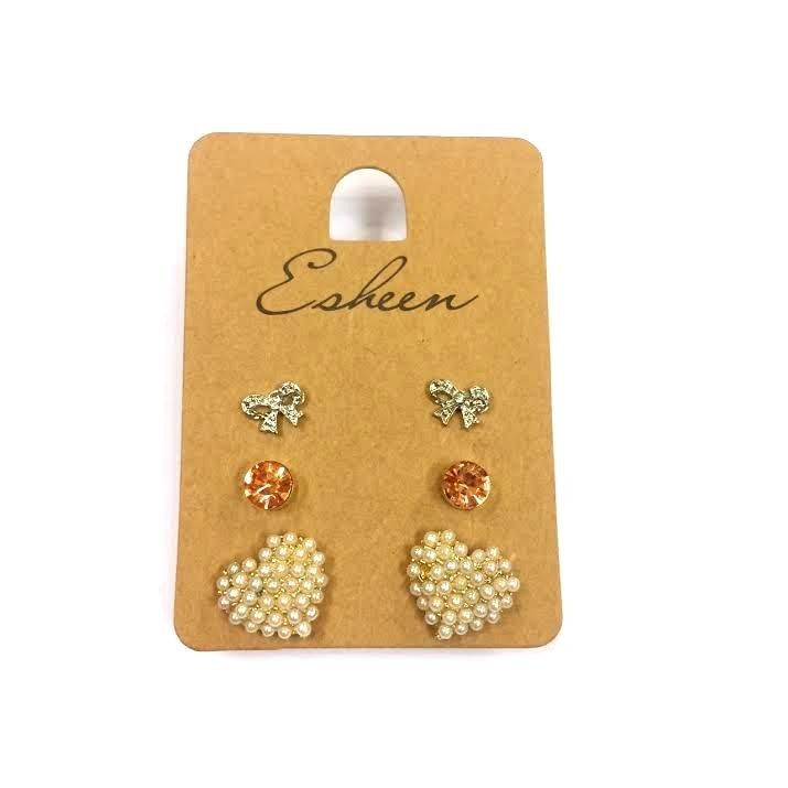 S_812209 - OHRRINGE 3 PAIR Bogen / STRASS Taste / HERZ MIT PERLEN (4st)