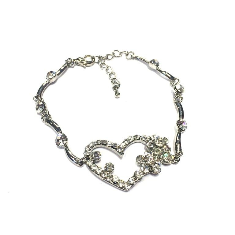 S_600041A - IBIZA LOOK geflochten Armband mit bunten Rhinestone-Herz (1.)