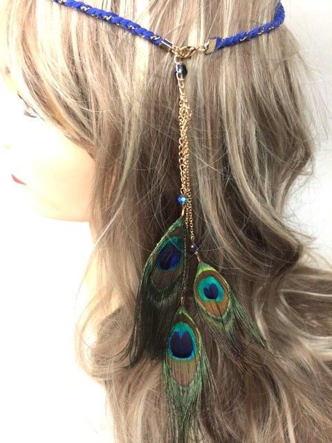 S_600029F - IBIZA LOOK BLUE BRAIDED Haarband mit Pfauenfedern (1.)