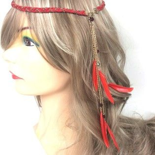 S_600112F - IBIZA LOOK geflochtenes Haar BAND MIT ROTEN SPRINGS (1.)