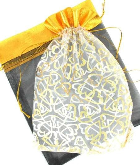 S_86107BC - Verpackungsbeutel Weiß / Gold BAROCK - 32CM (24st)