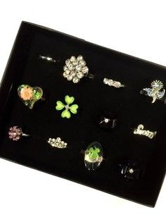 S_70211U - Exklusive Luxus-RINGE MIT KASTEN ASSORTED BLUME / BUTTERFLY (6pc)