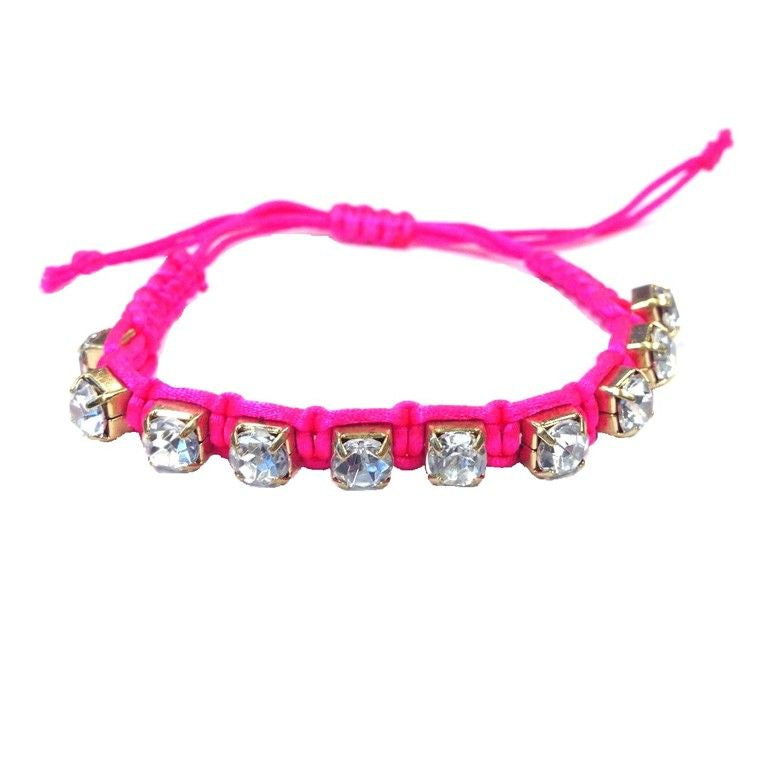 S_600797A - BRACELET 3 LAYER STRASS / Schädel / BRAID FEL PINK (1.)