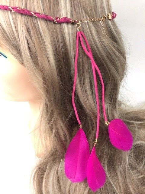 S_600028F - IBIZA LOOK geflochtenes Haar BAND MIT FEDERN FUCHSIA (1.)
