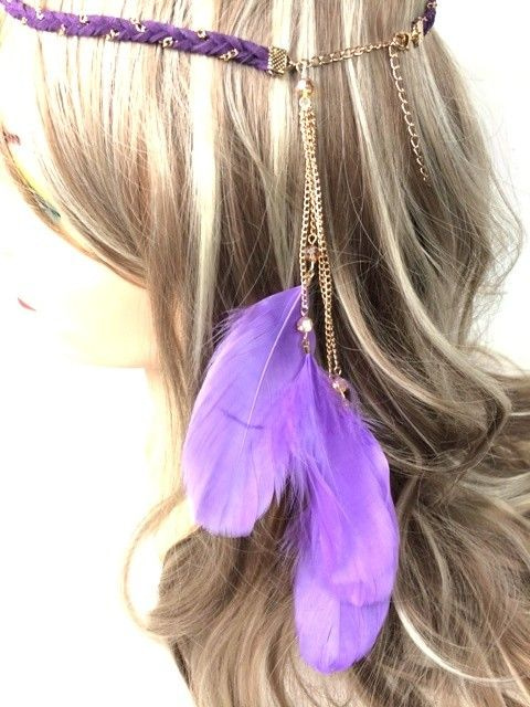 S_600026B - IBIZA LOOK geflochtenes Haar BAND MIT FEDERN PURPLE (1.)