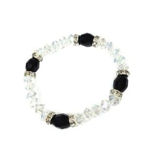 S_700772 - Elastische Armband Facettenperlen klar / schwarz (4 Stück)