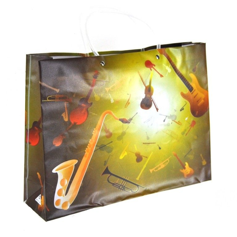 Herrlicher Tragetasche für alle gekauften Artikel in Ihrem Shop. Die Tasche verfügt über einen robusten Kunststoff-Griff und eine fröhliche musikalische Prägung.